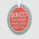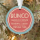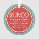 Vintage style graphic art design Bunco ornament. Features a stylish striped background with a banner emblem. Text reads:Bunco, Marvellous Friends, Wonderful Laughs and Precious Times. The Bunco ornament can be used as a Bunco award or Bunco prize. Display your Bunco ornament in your office, kitchen, at your Bunco event or on a holiday tree.