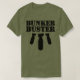 This military themed fatigue green t-shirt features a distressed design of the phrase 'bunker buster' with three bombs placed underneath the text. Perfect for a military buff who appreciates the awesome power of dropping bombs from way up in the sky.