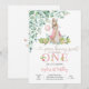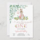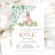 Celebrate your little ones special day with this whimsical bunny first birthday invitation. Featuring a sweet watercolor bunny in a floral crown holding a pink balloon, this pastel design is perfect for a girls birthday party. The charming woodland theme with soft greenery and flowers creates a magical, fairy-tale atmosphere guests will adore. Personalise easily with your childs name, party details, and RSVP information to make it uniquely yours. A delightful choice for spring, summer, or garden-themed celebrations.