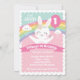 Adorable Bunny Birthday Party Invitation, featuring a cute bunny, adorable little clouds and a colorful rainbow. Perfect for any age!