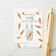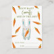 Gender neutral baby shower invitations. Featuring the saying 'A LITTLE BUNNY IS ON THE WAY!', an illustration of a watercolor bunny (rabbit) with carrot in paws, and many orange colour carrots. Matching items available.