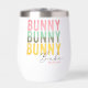 Bunny Babe Cute Modern Girly Easter Personalised Thermal Wine Tumbler features the modern text "Bunny Bunny Bunny Babe" in pink, turquoise and yellow typography and personalised with your name by editing the text in the text box provided. Designed by ©Evco Holidays www.zazzle.com/store/evcoholidays