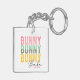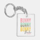 Bunny Babe Cute Modern Girly Easter Personalised Keychain features the modern text "Bunny Bunny Bunny Babe" in pink, turquoise and yellow typography and personalised with your name by editing the text in the text box provided. Designed by Evco Holidays www.zazzle.com/store/evcoholidays