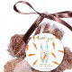 Gender neutral baby shower invitations. Featuring the saying 'A LITTLE BUNNY IS ON THE WAY!', an illustration of a watercolor bunny (rabbit) with carrot in paws, and many orange colour carrots. Matching items available.