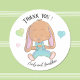 A cute white round sticker with a watercolor bunny and some hearts to thank the guest from you baby shower . Personalise it with your own text .