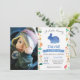 Bunny 1st First Birthday Invitation with custom photo. Boy Little Bunny. Easter Egg Bday Invitation. Rabbit. Egg Hunt. Watercolor Floral Flower Blush Pastel Blue Background. 1st 2nd 3rd 4th 5th 6th 7th 8th 9th 10th 11th 12th 13th 14th 15th, Any Ages. Printable Digital. For further customisation, please click the "Customise it" button and use our design tool to modify this template.