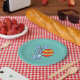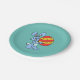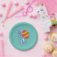 Bunny Cartoon Holding An Easter Egg paper plates. A great design for any Easter celebration. It features a cartoon rabbit holding a red and yellow, colourful Easter Egg. A cute design for any Easter party.