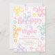 Bunny Daisy Floral Pastel Spring 3rd Birthday Invitation