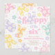 Bunny Daisy Floral Pastel Spring 6th Birthday Invitation
