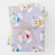 Some cute pastel wrapping paper sheets with sweet white bunny faces and pawprints . Perfect for Easter or baby shower gifts .