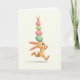 This card shows a brown bunny with long ears and a fluffy white tail hurrying across a soft, creamy background 🐇. Its bent arms and wide eyes give it an eager, caring look, as if it’s rushing to bring a small surprise to someone special. Balanced on its head is a tall stack of four pastel eggs in pink, yellow, and mint green, decorated with stripes and polka dots. Sitting on the very top is a tiny bunny companion wearing a simple little cap, reaching out with open paws as if sharing a delighted, friendly moment 🐰. The gentle shading and smooth color transitions make the pair look rounded and touchable, while the empty backdrop keeps all attention on their shared mission. A short Easter greeting appears near the top in a soft spring color, with a smaller line of text tucked below it in a lighter tone. Beneath the running bunny, a faint gray shadow stretches along the ground to anchor the motion.