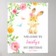 Bunny Girl First Birthday Colourful Animal Welcome Poster
