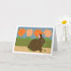 This cute bunny is guilty of eating the garden plants. Brown bunny in front of the green hedge with tulips and sky in the background. The image looks like hand-painted paper. Use for Spring Equinox, March equinox, the first day of spring, Easter, Vernal Equinox, and mother earth. Brown, peach, green, brown, and pink. Inside: Happy Spring