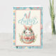 This adorable Easter card features a cute little bunny rabbit peeking, or maybe hatching, out of a cracked Easter egg with the words "Happy Easter" overhead in a vintage pink and blue script adorned with bunny ears. Personalise by customising the message on the inside and/or adding your name(s) - or leaving that part blank if you wish to add your own handwritten signatures later.