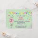 A birthday invitation with a cute bunny holding a balloon. A little birdie sits on top of the balloon whistling a tune. A birthday bunting banner and multicolored confetti decorate this design.