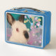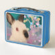 This is a standard metal lunchbox that appears to work just fine. We designed this box ourselves with an uploaded photo and custom text on the front and back. It looks absolutely beautiful except the front of the lunchbox is not centered like it shows in the photo. The print borders don't align with the inset flat part of the box where the preview photo online showed it perfectly centered in there. The back looks nice and centered though.