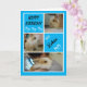 Send Birthday wishes to a rabbit owner with this blue Hoppy Birthday three-photo collage greeting card with customisable name.