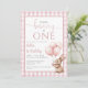 Bunny Pink Balloons Photo 1st Birthday Party Invitation