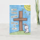 A white bunny rabbit prays at the foot of the wooden cross on a hill of grass under a whimsical bright sun. Words look to be torn from the pages of a book and say “… because everything good and sweet comes from the Lord…”. Original design by Christie Black of ©Creations from the Heart.