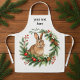 This simple wildlife apron features a pencil sketch rabbit with Christmas wreath frame. You may personalize this apron with your name or other text. The simple artwork on this apron will be appreciated by nature and animal lovers.