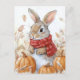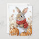 Bunny Rabbit Autumn Pumpkin Illustration Postcard
