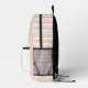 Sweet baby bag backpack done in soft blush, with graphics of a pretty toy bunny rabbit, on the pocket area. Blush and white stripes accent the solid blue front of the bag. Personalise the large one letter blush monogram and the blue name to suit your needs.