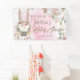 Bunny baby shower banner with adorable baby girl bunny rabbit with pretty flowers in her hair on a beautiful vintage watercolor flower background. This cute bunny baby shower banner is easily customised with the text of your choice.