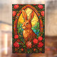 Bunny Rabbit Colourful Floral Faux Stained Glass Window Cling