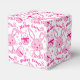 Graphic cute bunny rabbits and Easter eggs patterned pink white Easter gift box. Ideal for filling with Easter gifts. Could also be used for wedding favours or birthday celebrations filled with sweets or gifts around Easter time or for Easter egg hunts. © Unique graphic art and pattern design by Sarah Trett.