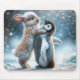 Bunny Rabbit Hugging a Penguin Mouse Pad