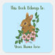 Bunny Rabbit Pink Flowers Bookplate Square Sticker