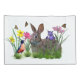 This cheerful image features a red breasted robin, a cuddly brown bunny rabbit, and butterflies that fly above the yellow, red, purple and pink flowers. The image is shown with a white background but it is easily changed to any other colour. Customise the product by adding a caption, name, or monogram of your own. The flowers are images from artist Dana Conditt at Digital Scrap Designs.
