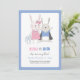 Cute blue Bunny Rabbit Birthday Invitation for your twins featuring adorable hand drawn boy and girl bunnies.