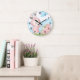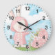 Bunny Rabbit Umbrella & Flowers Large Clock