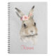 Cute grey spiral notebook with watercolor floral bunny rabbit. Add your name and make this notebook your own. The pink name is so sweet. This is as cute as can be. This design can be transferred to many other items of your choice.