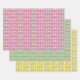 A fun all-over pattern of cartoon-style rabbits holding cards that spell out "MUM". Fun rabbits wrapping paper. Three different background colours with a pattern of bunnies.