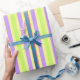 This Easter bunny inspired wrapping paper features stripes in pretty shades of pink, green and lavender on yellow from our Bunny Ribbon colour palette.