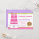 Bunny Slippers Pyjamas and Pancakes Party Invitation for that special occasion. The background has purple stripes and pink polka dots. The words can be changed to suit your own requirements.