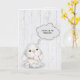 cute bunny and bubble word illustration on grey rustic wood for thinking of you