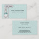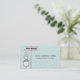 The perfect business card for a pet shop with a bunny holding a wooden sign. The background is light green with white discrete circles