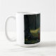 This mug shows a darling brown and white Easter bunny in the woods with a basket of surprises.