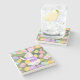The coasters are gorgeous, a quality feel and heavy weight. They look like a precious archeological find. A rustic stone juxtaposed with a modern floral black and white print. I like the way the print goes slightly imperfect on the cut stone edges giving them a kind-of natural beauty.