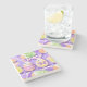 The coasters are gorgeous, a quality feel and heavy weight. They look like a precious archeological find. A rustic stone juxtaposed with a modern floral black and white print. I like the way the print goes slightly imperfect on the cut stone edges giving them a kind-of natural beauty.