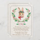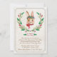 A classic, watercolor bunny wearing a flower crown and framed with a matching floral wreath. An elegant Easter invitation to an egg hunt.