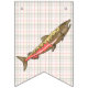 Fabulous Chinook salmon -- also known as king salmon, Quinnat salmon, spring salmon and Tyee salmon. A large king salmon is a much-desired, highly-prized catch for the sporting angler. Adult Chinook salmon can get up to 55 to 60 inches in length and up to 130 pounds. The sport-caught record for king salmon was established in 1985 at 97.25 pounds; while the commercial catch world record was set in the late 70's at 126 pounds. Before returning to their home rivers to spawn, Chinook may spend anywhere from one to eight years in the ocean. Though naturally found in waters of the Pacific Northwest, including parts of Canada and Alaska, Chinook salmon has also been introduced successfully into the some regions of the Great Lakes. Serious anglers would love the opportunity to fish for king salmon because of the fight they put up once hooked. Most folks are also aware of the health benefits of eating salmon: the rich omega-3 fatty acids, vitamin D and selenium. Salmon also contains bioactive peptides that might provide protection for joint cartilage, support insulin effectiveness and control digestive inflammation. However, what they may NOT know is that these benefits are only derived from WILD salmon. Farmed salmon has dramatically fewer health benefits. So, the next time your favourite angler wants to go fishing for Chinook salmon -- hope he brings home a really big catch! This marvellous design is a celebration of the Chinook salmon, featuring a single salmon, swimming on a sea of colour-coordinated plaid. For this wonderful bunting banner, each element has been individually put together. The end banners showcase the majestic king salmon on either side of the lettering which, here, spells out "HAPPY BIRTHDAY" in deep (ironically) earthy brown on the coordinating plaid that is featured throughout. You are welcome to modify the letters to suit your favourite angler's special occasion.