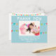Cute bunting flags birthday photo thank you postcard. Thank your guest for coming to your child`s birthday party! The design has colourful birthday party bunting flags and a photo in a frame - insert your photo into the template. Change the thank you message if you want and the child's name.