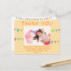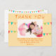 Cute bunting flags birthday photo thank you postcard. Thank your guest for coming to your child`s birthday party! The design has colourful birthday party bunting flags and a photo in a frame - insert your photo into the template. Change the thank you message if you want and the child's name.