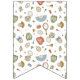 These bunting flags are part of our Storybook Shower collection. The design is reminiscent of an old favourite story book, featuring illustrations of character-like animals and objects. Use it to decorate a gift table, or to set up a photo area.