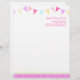 Professional party planner business or fun everyday letterhead in pink and purple, aqua and yellow. Perfect for professional events planners, entertainers or just for everyday and event use. Edit this letterhead with your name and contact details. Unique design by Sarah Trett.