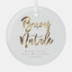 Buon Natale Italian Merry Christmas Phrase Typography Elegant Faux Gold Foil Text, Modern Script, Chic Glass Christmas Ornament